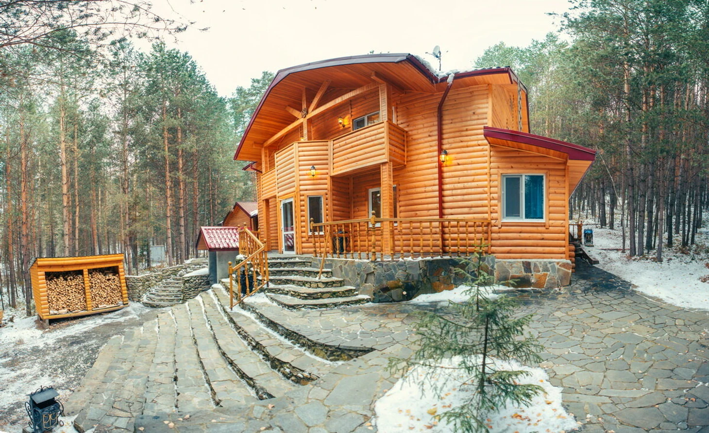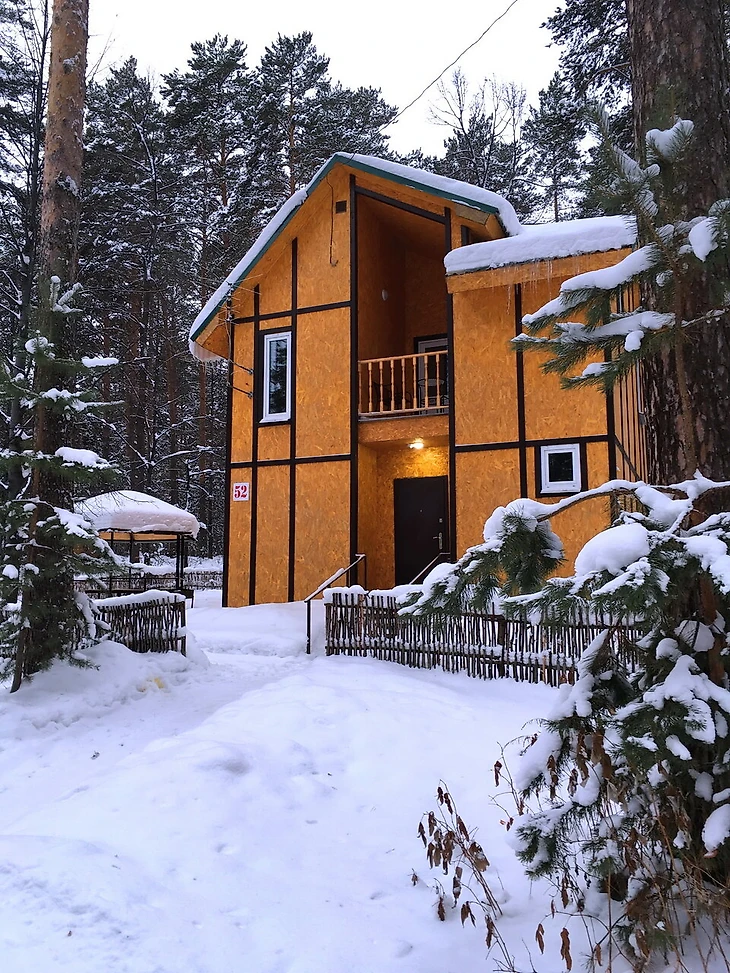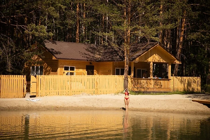 Отдыхающие загородного клуба «Лесная сказка» проводят время на природе у озера Балтым. Комплекс предлагает комфортные условия размещения. Можно выбрать бревенчатую избу или альпийский домик.