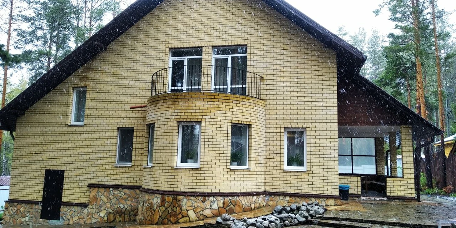 Дополнительный уют в гостиной создает камин. На просторной кухне есть необходимая посуда и бытовая техника. Рядом с террасой находится зона барбекю. Из досуга представлена русская баня и настольный теннис. Дом находится в живописном месте. От него можно отправиться на осмотр озера Ижбулат, карьера с голубой водой, водопада и горы Каменной.
