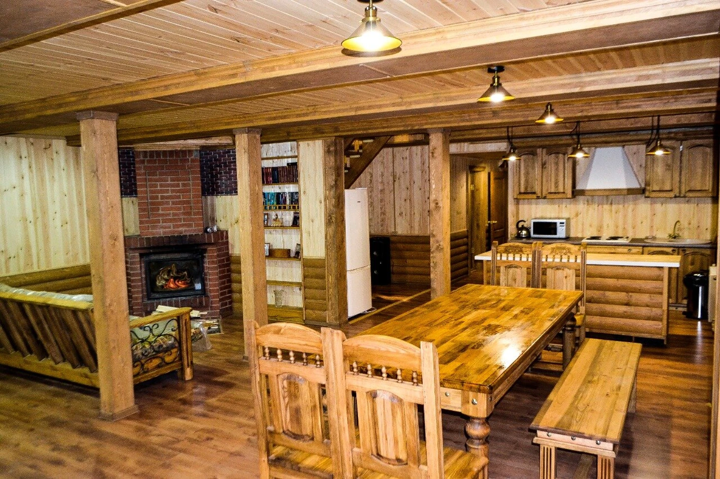 После активного отдыха можно расслабиться в русской парной. Администрация комплекса предлагает купели с лечебными травами. Местный повар готовит вкусные блюда восточной кухни. В гостиной у камина находится бильярдный стол.