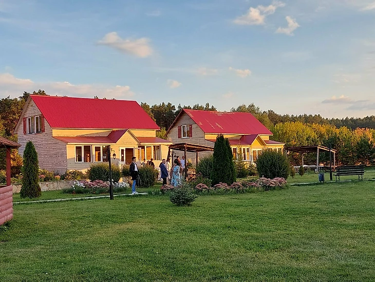 Для проживания гостей предусмотрен дом с сауной, банкетным залом на 50 человек и бассейном, комнатой отдыха. Во дворе дома есть мангал и казан, можно приготовить блюда на гриле. В гостевом коттедже есть сауна с бассейном, веранда с мангалом, банкетный зал на 300 гостей. Есть возможность арендовать кирпичные или деревянные беседки со столами, лавками и мангалом.