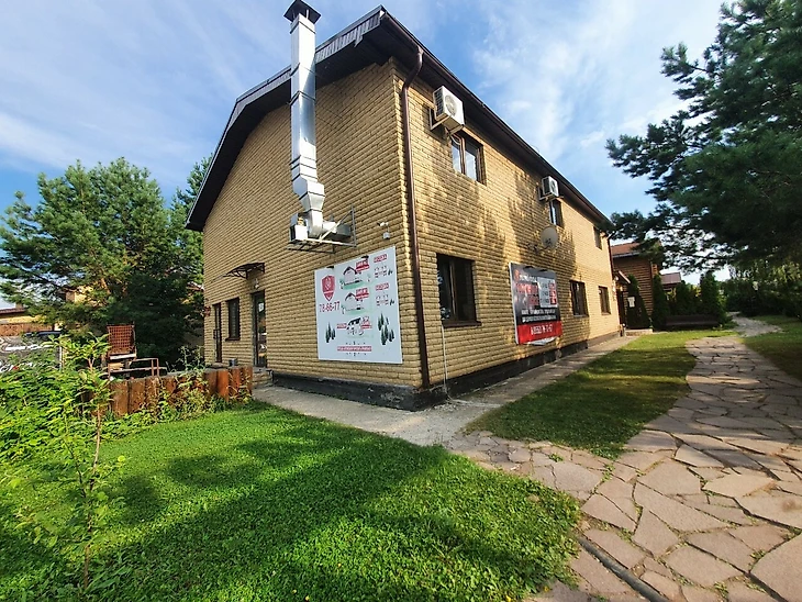 Сам гостевой комплекс разделен на две части. В Большом доме оборудовано 10 спальных мест и банкетный зал для 50 человек. В Малом доме всего пять спальных мест и банкетный зал на компанию из 25 гостей. На территории центра находятся баня, открытая веранда и ресторан на 130 персон.