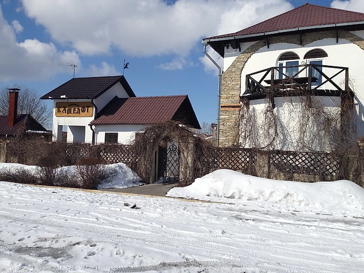 Как и предыдущая база отдыха «Камелот» находится на территории национального парка «Нижняя Кама». Территория комплекса оформлена в стиле охотничьего шале — кованные заборы, дорожки вручную мощеные камнем, лозы винограда. На стенах коттеджа развешаны оружие охотников и их трофеи. Есть зона с камином.