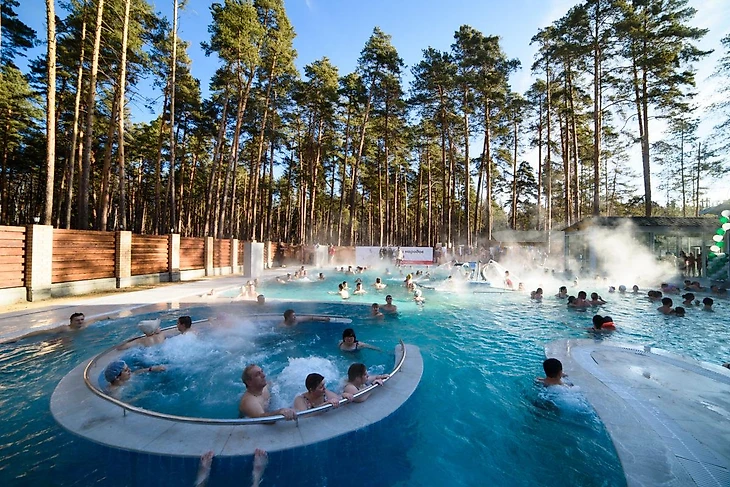 Действует несколько бассейнов, один большой в самом термальном комплексе, другие на улице под открытым небом с горячей водой. Купаться в них можно в любое время года. Спа-процедуры помогут снять усталость, расслабить мышцы и избавить от болезненных ощущений. Отдельного внимание заслуживает баня с парениями афгусс, включающими ароматерапию, которая улучшает физическое и эмоциональное состояние человека. Огромное разнообразие активностей, круглый год можно играть в футбол на поле с искусственной травой, есть детские площадки и анимация, работает небольшой контактный зоопарк. Летом можно брать напрокат велосипеды, роликовые коньки, гироскутеры, зимой санки, лыжи и коньки.