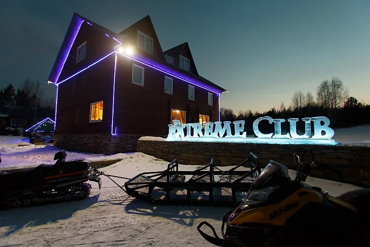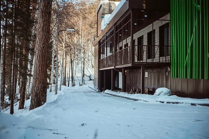 Конечно, одним комфортным проживанием все не ограничивается. Тут есть и русская баня с жаркой парной, и горячая купель, в которую особенно хорошо окунуться при прохладной температуре воздуха. На территории и за ее пределами много зимних развлечений: есть каток, причем кататься можно прямо по льду озера, заливается горка, по которой можно скатиться на тюбинге к озеру, напрокат можно взять мотосноуборды и квадроциклы, а еще посетить кофейню в лесу.