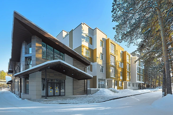 Отель расположен очень удачно, всего в десяти минутах ходьбы от него находится горнолыжный курорт «Солнечная Долина», в котором с каждым годом совершенствуется инфраструктура и усиливается конкуренция с другими курортами Урала. Помимо этого парк-отель совершенно новый, он был открыт в 2022 году. Отель компактный, в нем всего шесть апартаментов, причем все они класса «люкс». Везде отдельный вход, в каждом номере есть спальня, кухонная зона, ванная комната и панорамные окна. Самый большой — шестиместный двухуровневый «люкс» площадью 87 квадратных метров.