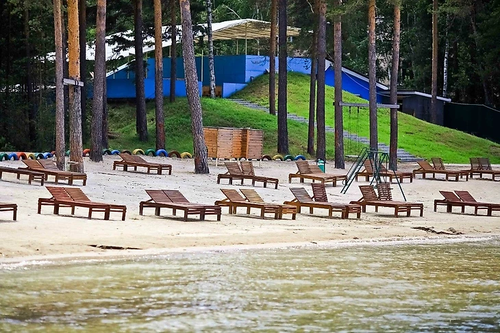 Отдыхающим доступна русская баня с выходом к озеру, летней верандой и мангальной зоной. Рассчитана она на 8–10 человек, на веранде панорамные окна. Аренда бани в час стоит 1 500 рублей, с чаном будет в два раза дороже. Также на берегу находится большое кафе-веранда, которое могут арендовать большие компании. Их других услуг аренда яхты, сап-борда, весельных лодок, катамаранов. Пляж оборудован зонтиками и шезлонгами. Отдохнуть на свежем воздухе можно в беседках с мангальными зонами. В получасе езды от шале находится горнолыжный комплекс «Солнечная долина».