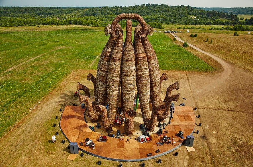 Небольшая деревня в Калужской области в начале 2000-х стала знаменита на всю страну. А теперь про это место знают далеко за пределами страны. На территории почти 600 гектаров появился огромный арт-парк с богатой коллекцией архитектурных и художественных объектов. Парк входит в часть национального парка «Угра». В разных уголках находятся объекты, которых на данный момент 30. Каждый год появляется новые. Их открытие приурочивают к ежегодному фестивалю «Архстояние», который проводится с 2006 года.