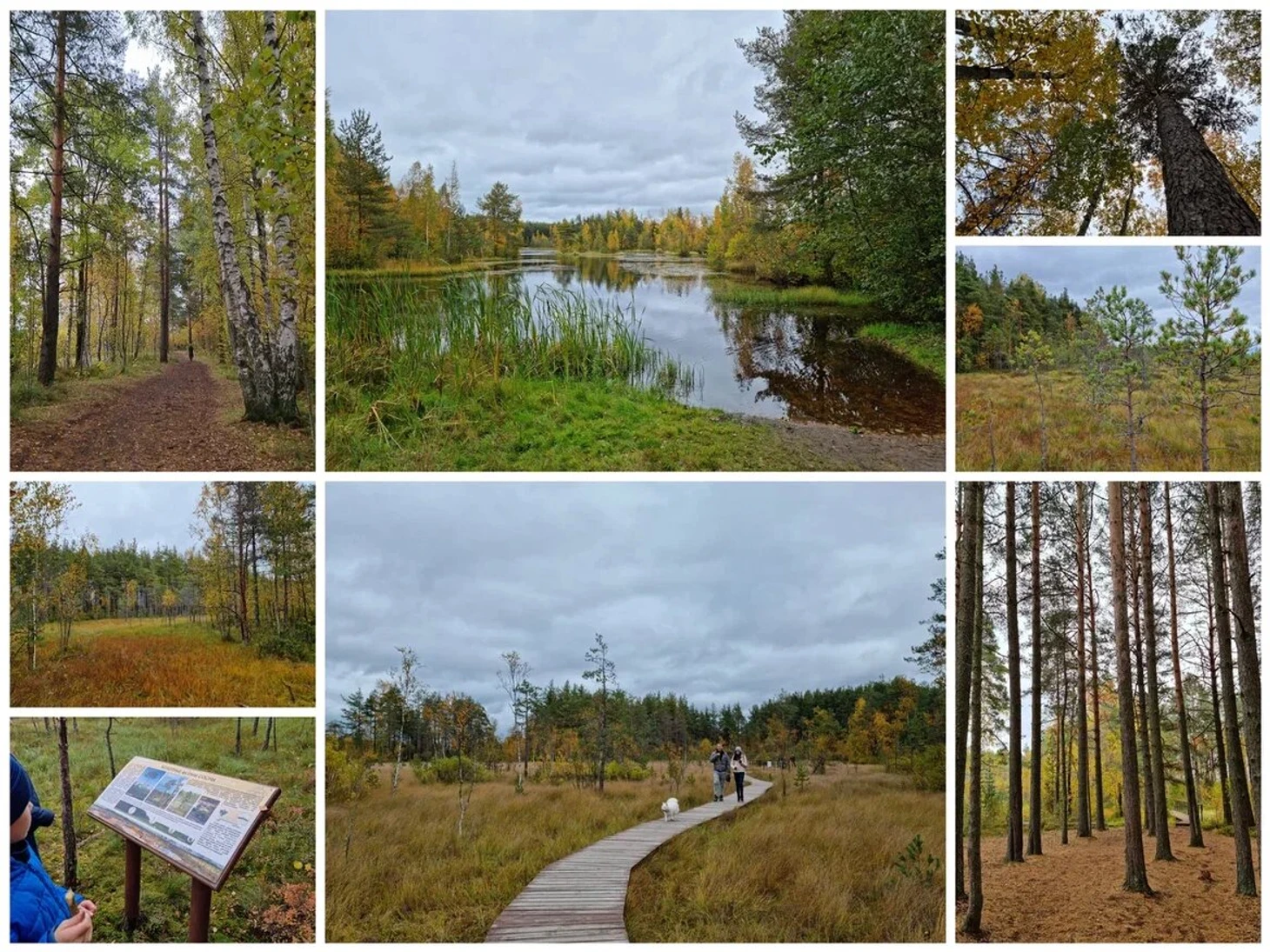 Маршрут пролегает через сосновый бор. Да, как-то посещать болото, сразу покажется не совсем понятным такое предложение. Однако вы получите яркие впечатления. Ведь на территории государственного природного заказника регионального значения проходит экологический маршрут. Здесь есть смотровые площадки, с которых открываются великолепные картины: болотные кочки в золоте низкорослых деревьев. Путешествовать нужно по мостикам, чтобы не попасть в неприятную ситуацию. Резиновые сапоги не нужны, а вот термос с горячим и вкусным чаем пригодится кстати.