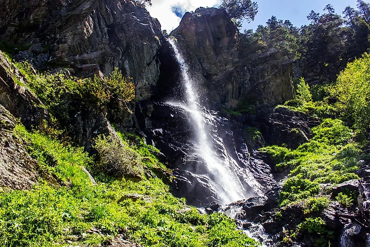 Именно в этих местах находятся самые высокие водопады Кавказа. И каждый турист, приезжающий сюда, старается посетить это уникальное природное зрелище. В 15 километрах от села располагаются каскады. Здесь девять мощных потоков создают сильный шум, который образуется, когда вода падает с высоты почти 90 метров. Зимой также сюда водят экскурсоводы туристов. Ведь замерзшие струи воды смотрятся весьма красиво.