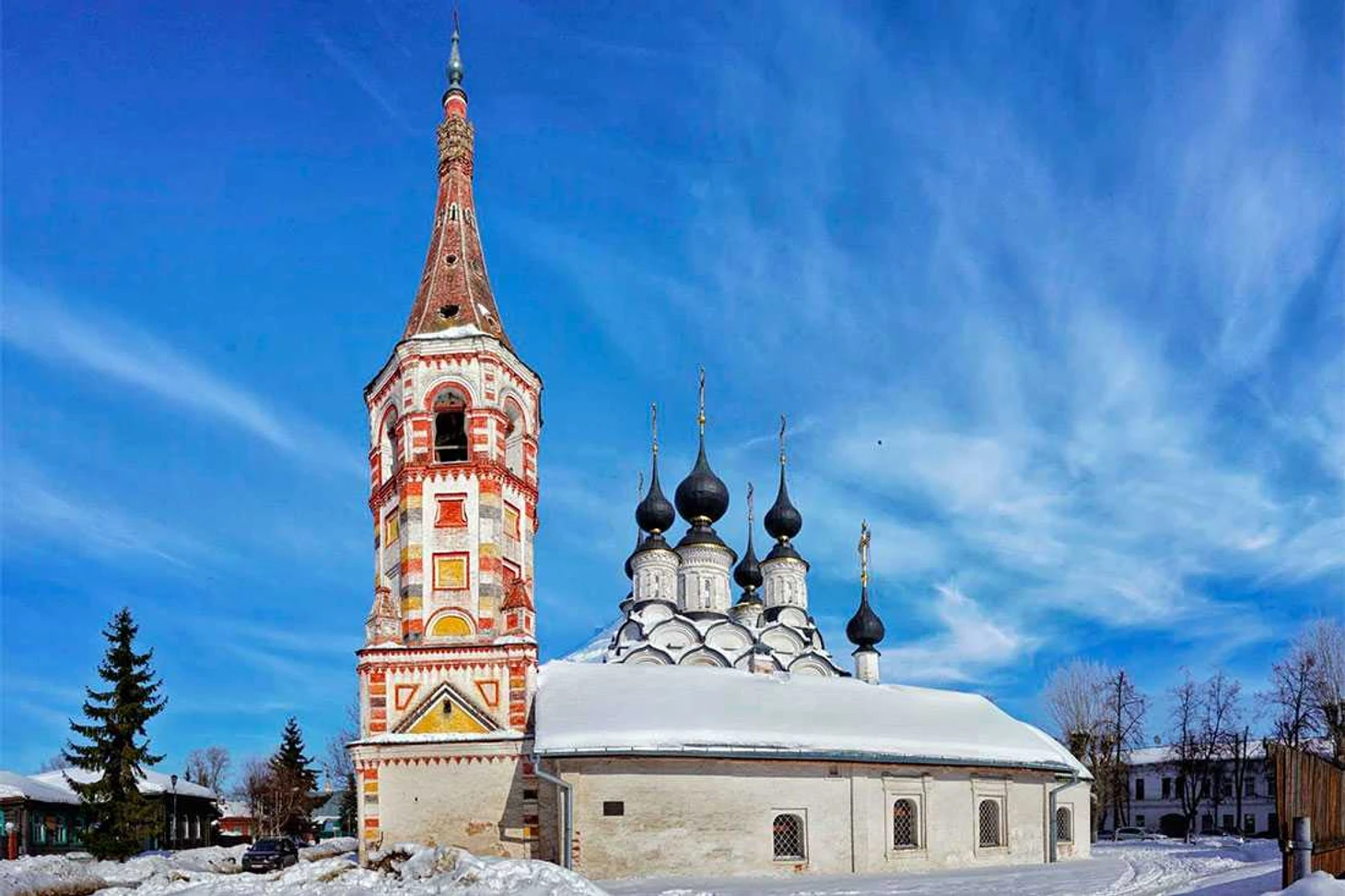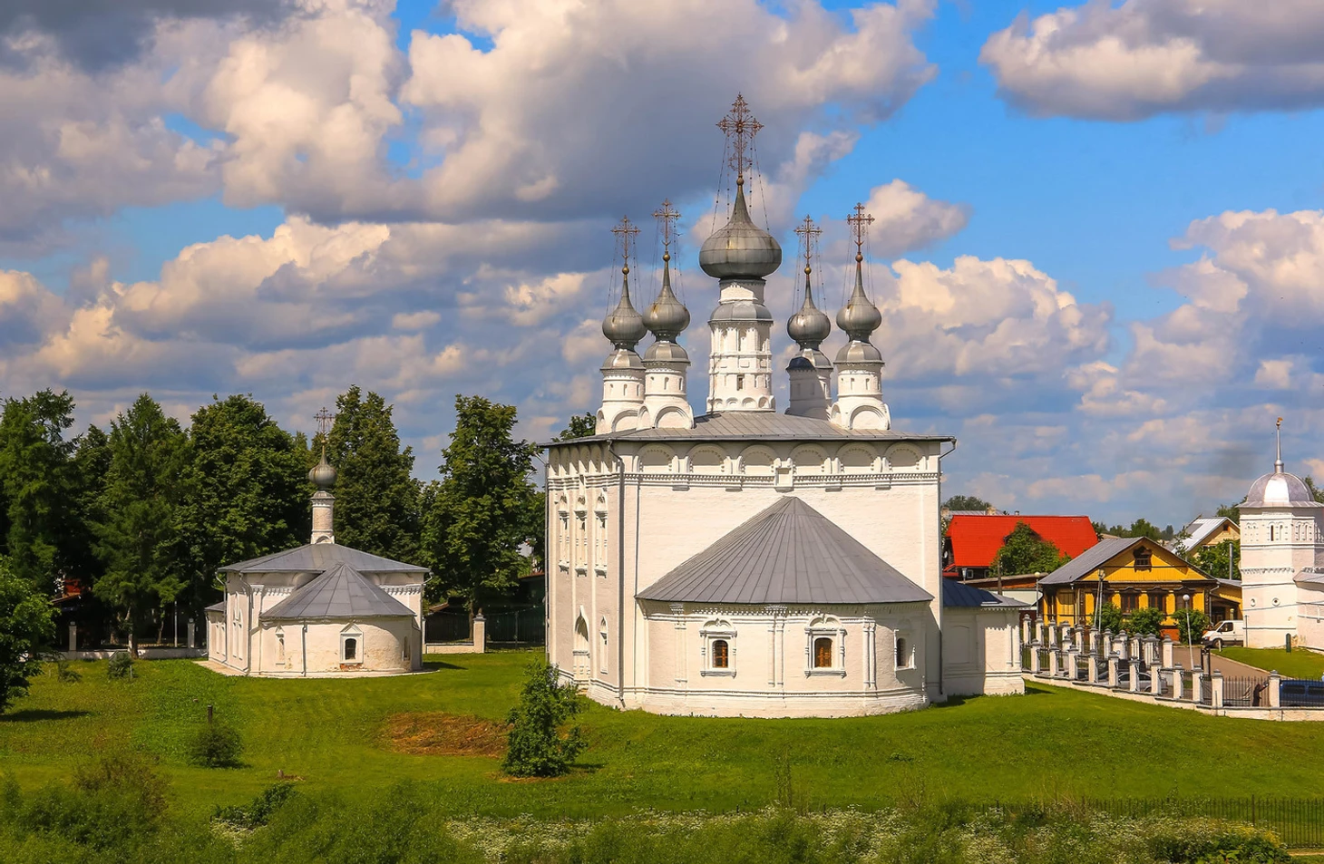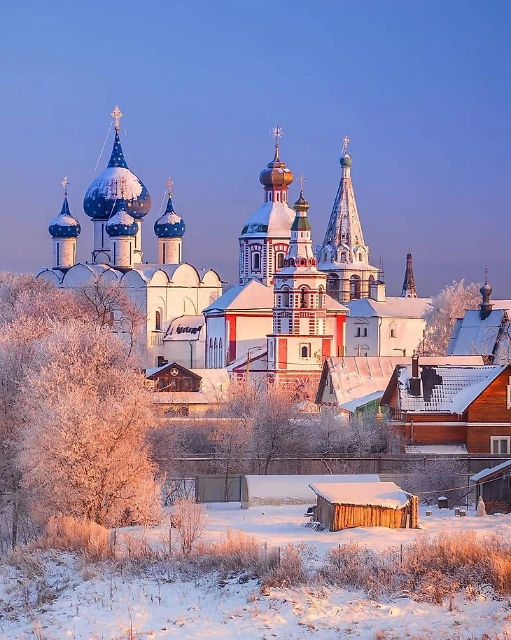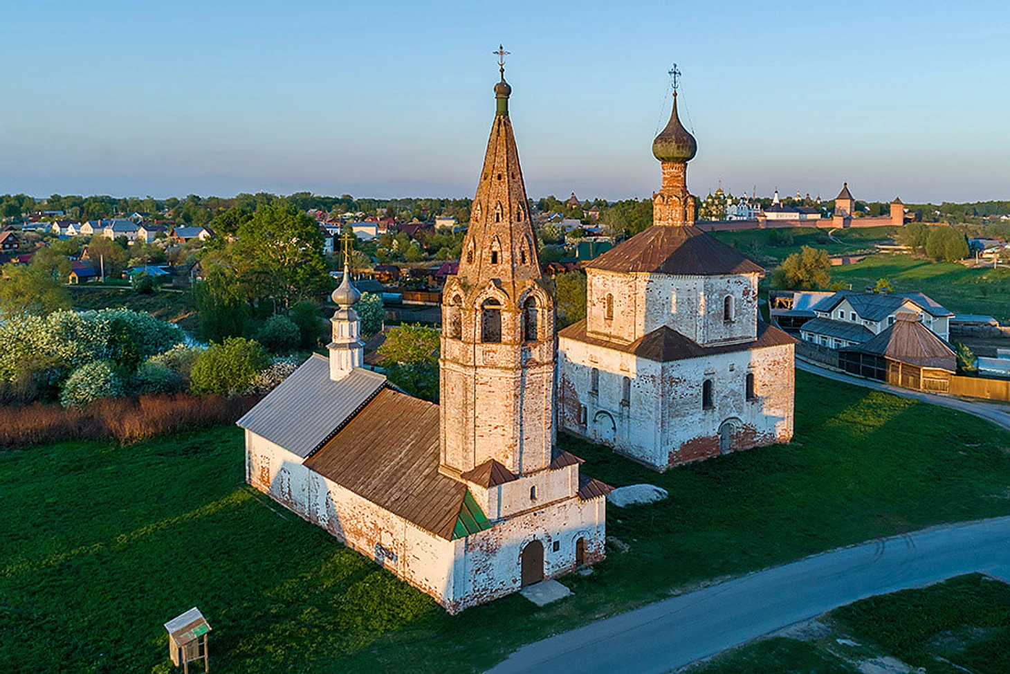 Архитектурный ансамбль Рождественской и Богоявленской церквей выглядит живописно благодаря расположению на берегу реки Каменка. Но и другие храмы Суздаля могут похвастаться красивыми видами. У многих храмов схожи истории.