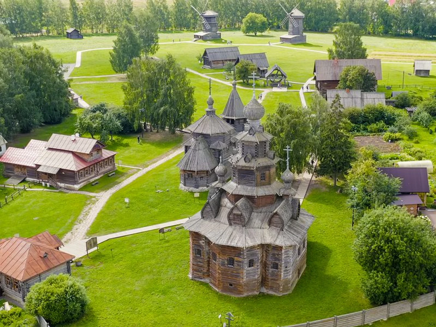 В музее любой дом можно осмотреть не только снаружи, но и изнутри. Внутри воссоздан быт владимирских крестьян, которые жили 200 лет назад. Есть дома с интерьером для более зажиточных людей: купцов и помещиков. В музее собраны не только жилые дома, но и большое количество хозяйственных построек: мельница, колодец, хлев, амбар и многое другое. Отдельного внимания заслуживает Преображенская церковь. Ее привезли из села Козлятьево в 1965 году. Конструкционно храм напоминает пирамиду, так как состоит из нескольких восьмериков разного размера. Полностью деревянная церковь выглядит живописно и благородно. Особенно красиво внутри, где располагается старинный резной иконостас.