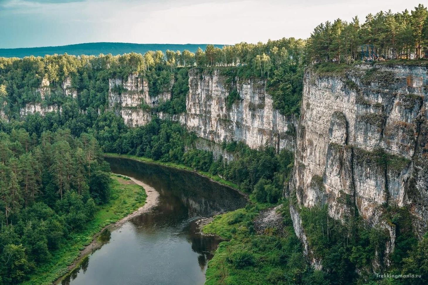 Айскими притесами называют скалы высотой до 100 метров, расположенные вдоль берегов реки Ай, крупнейшего притока реки Уфы. Добраться до локации можно на машине или катамаране. Последние сдают в аренду в Межевом поселке. Стоимость аренды за сутки от 3000 рублей.