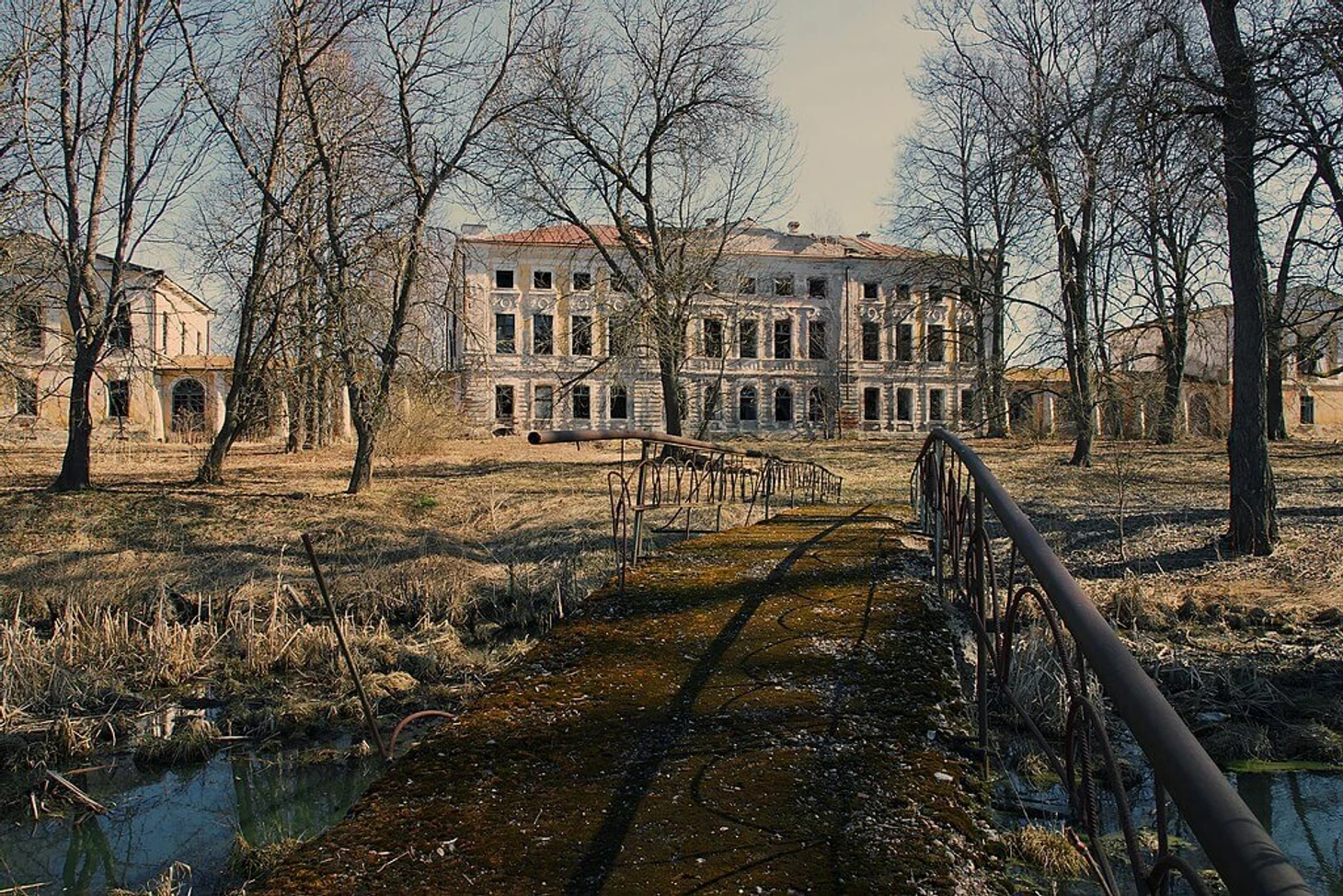 Заброшенные места нравятся не всем, поэтому следующий пункт маршрута следует выбирать поклонникам старины. Дворец был построен более 150 лет назад для дворян Львовых. Они владели этими землями до 1916 года. Дмитрий Романович скончался и не успел застать национализацию. Большевики разместили здесь санаторий, который проработал вплоть до развала СССР. После здравницу закрыли. И ранее уникальное место превратилось в место обитания вандалов, которые изрядно подпортили внешний и внутренний вид усадьбы. Сейчас снаружи и внутри дворца царит тлен и запустение, а дальнейшая его судьба остается неизвестной.