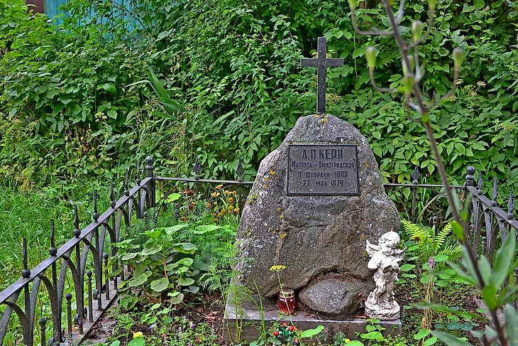 В этой деревне в 18 веке были построены два небольших храма и погост. Здания хорошо сохранились до наших времен без реставрации. Но самой интересной достопримечательностью является кладбище. Здесь погребена женщина, которая была очень дорога А.С. Пушкину, Анна Петровна Керн. Могила очень скромная: надгробный камень с крестом и табличкой, окруженный невысоким заборчиком, утопающим в зелени.
