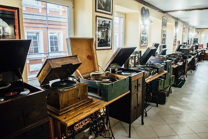 Здание музея имеет два этажа, на первом расположен музей сувениров, на втором — сама экспозиция. В последней представлены коломенские патефоны, фонографы Эдинсона, патефоны братьев Пате и модели изделий из разных стран мира. Помимо знакомства с вариантами изготовления проигрывателей, в музее посетители могут послушать уникальные пластинки, узнать историю Коломенского патефона, изучить различия в разных видах проигрывателей.