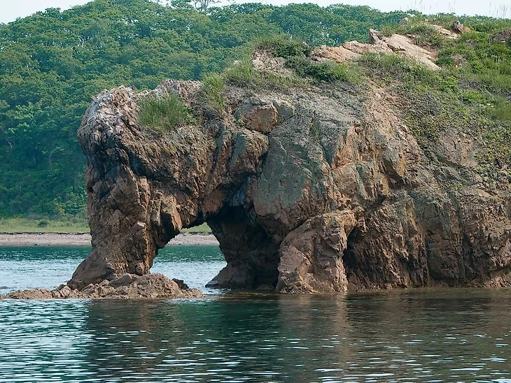 Береговая линия мыса, которую омывают теплые воды Японского моря, усеяна краснокнижными соснами, они преобладают во всей флоре острова. Основной достопримечательностью близ мыса считается кекур «Штаны». Визуально кекур напоминает нам привычный предмет гардероба, за что и получил свое имя. В словарях сложно найти эпитеты, чтобы описать живописные виды и ощущения, которые испытываешь, поэтому лучше один раз приехать и насладиться этим самостоятельно.