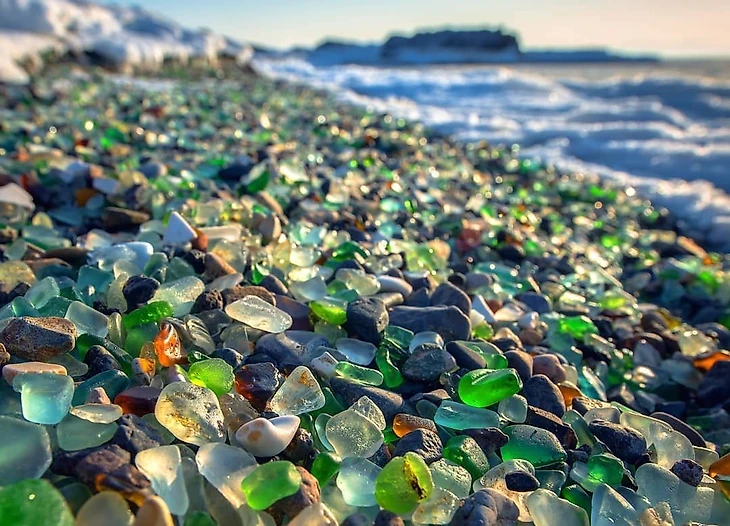 Несмотря на пагубное влияние человека на окружающий мир, природа и из самого худшего может сделать нечто удивительное. Это правило подтверждает бухта Стеклянная, расположенная на берегу Уссурийского залива. Уникальность места в том, что на морском побережье находится не песок и галька, а разноцветные кусочки из стекла и фарфора.