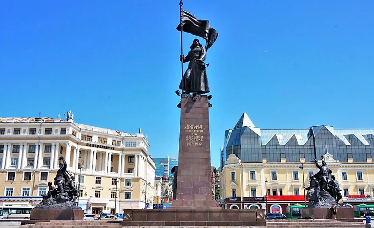 Во время Октябрьской революции была объявлена власть Советов, но на Дальнем Востоке революционерам предстояла напряженная борьба с местными оппозиционерами, которая в итоге завершилась победой. В напоминание о тех событиях, в центре Владивостока весной 1961 года был открыт памятник. На высоком постаменте находится боец революционной армии со знаменем в руках, его взор обращен в сторону бухты. С правой стороны от бойца находится скульптура бойцов, свергнувших самодержавие в 1917 году, а слева – скульптура партизан, боровшихся с японскими интервентами, которые вторглись во Владивосток в 1918 году. Скульптурная композиция считается одной из самых известных в городе и стала настоящим символом Владивостока.