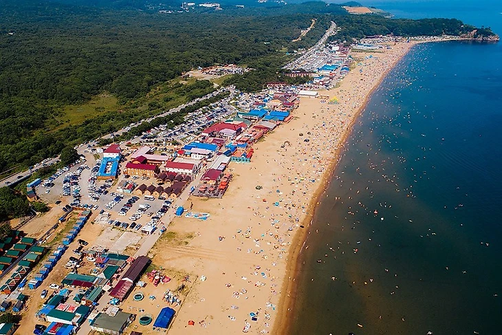 В 2016 году пляж попала на восьмое место в рейтинге лучших в России. Береговая линия бухты Лазурная простирается вдоль Уссурийского залива более чем на два километра. На пляже находится спасательная вышка, что делает отдых безопаснее. Отдыхающие могут воспользоваться водными развлечениями, посетить кафе и просто хорошо провести время.