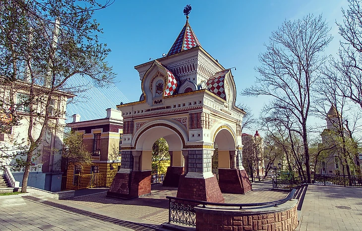 Столица Приморского края была построена в 1860 году. Несмотря на территориальную близость с Китаем и Японией, в культуре и быте города преобладает русский след. На главной набережной Владивостока можно найти памятник в честь первооткрывателей – русских солдат. Становление Владивостока тесно связано с генералом Н. Н. Муравьев-Амурским, который приложил руку и к строительству Хабаровска.