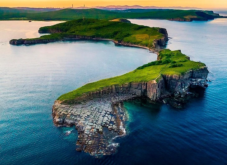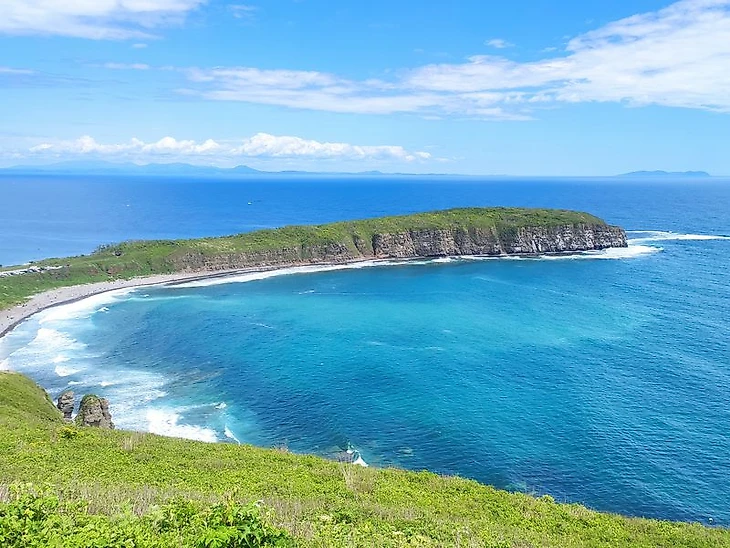 В Японском море есть еще одна интересная природная локация. Невероятно красиво на мысе Сосновый в середине лета. В это время начинается цветение полевых цветов и все утопает в зелени. Пейзажи довольно нетипичны для России и больше напоминают природу затерянного посреди океана райского острова.