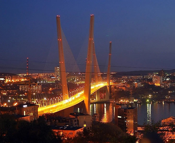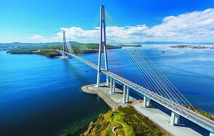 Русский мост во Владивостоке открылся в 2012 году. Стройка моста-рекордсмена велась на протяжении 44 месяцев. После открытия он занял первое место по высоте пилонов (324 метра) и вантов (580 метров) и протяженностью основного пролета в 1104 метра. Строительство моста, который соединил остров Русский и материковую часть города, было приурочено к саммиту Азиатско-Тихоокеанского экономического сотрудничества, который состоялся в 2012 году.