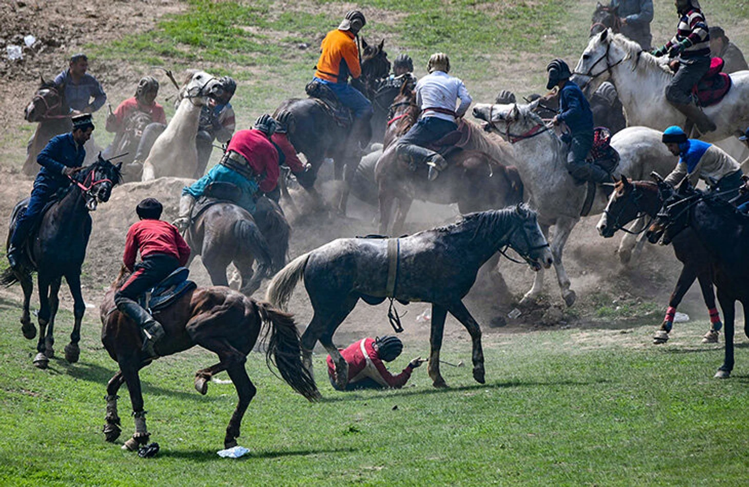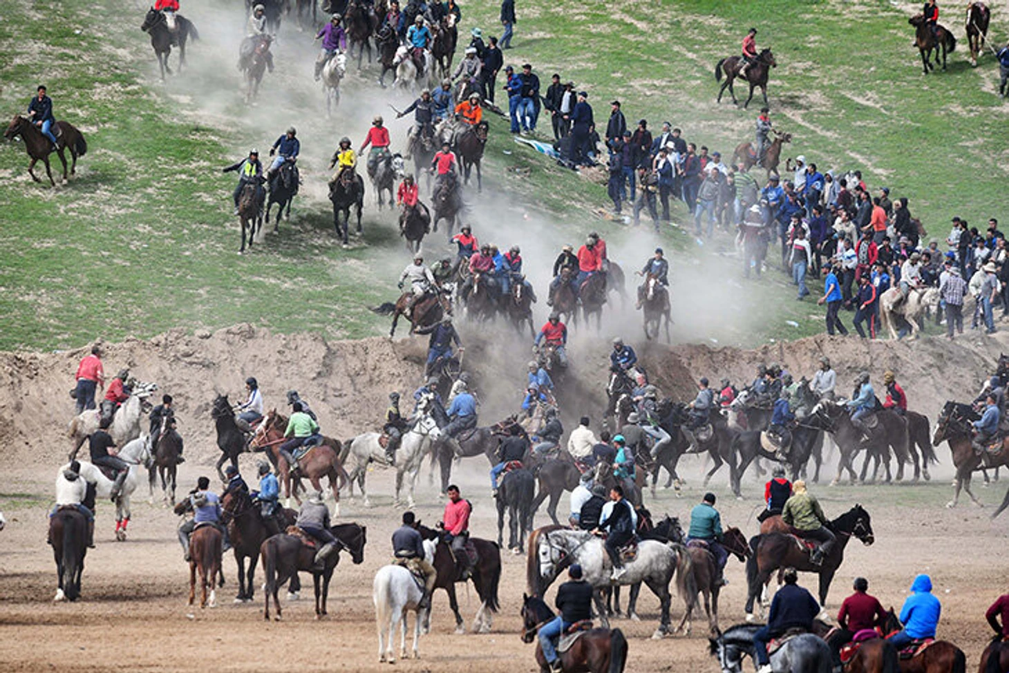 Хаотичное зрелище: мужчины в шлемофонах скачут на большом поле. Но наездников так много, что пространства между ними почти нет, и, кажется, тут не далеко до массовой давки. Еще эти мужчины бьют хлыстом лошадей соперников и наклоняются к земле, чтобы схватить обезглавленную и потрепанную тушу козла. Цель – дотащить ее до ворот, казана или начерченного мелом на земле круга.