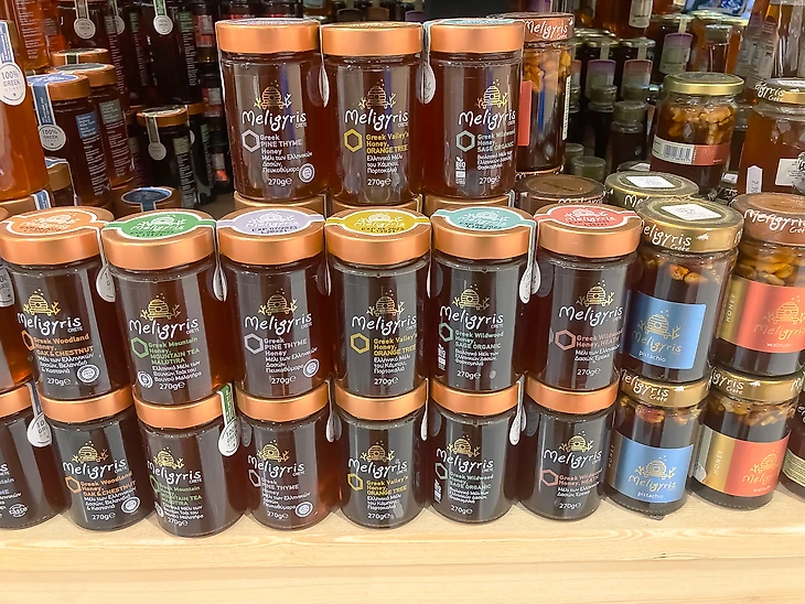 Греция, по количеству ульев на квадратный метр, занимает лидирующие позиции в мире. В стране производят разные сорта меда — еловый, сосновый, тимьяновый и другие. Лучше покупать мед у пчеловодов. Так вы избежите покупки меда, прошедшего химическую обработку. Напрямую пчеловоды продают товары в специализированных магазинах.