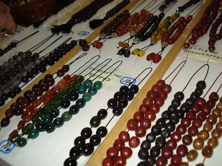 Из других национальных предметов можно приобрести комболои. Это особый вид четок, которые помогают успокоиться и снизить уровень стресса. В отличие от обычных четок, которые часто используют в религиозных обрядах и молитвах, комболои предназначены для игры.