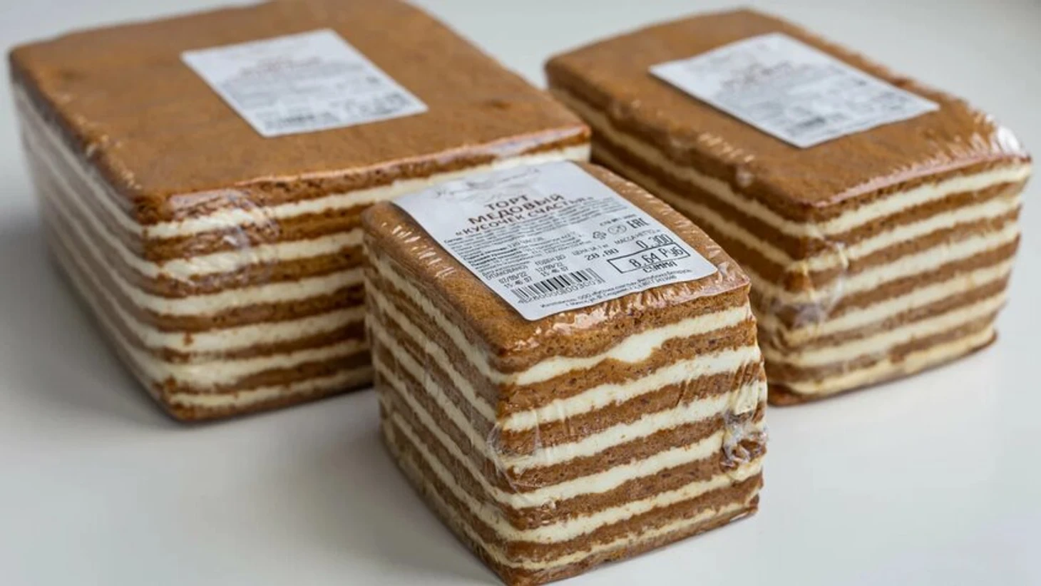 В фирменных магазинах и кондитерских по всей стране продается торт «Кусочек счастья». Это классический медовик, от которого невозможно оторваться. Тор продается на развес по 300, 500 и 1000 граммов. Структура у торта хорошая, поэтому он не развалится в дороге. Помимо медовика можно приобрести и другие десерты, включая кокосовые, шоколадные, морковные и с пониженным содержанием сахара. Десерты от «Кусочка счастья» продаются по всей стране. В Минске торт можно купить на Комаровском рынке, торговых центрах Green City, Dana Mall и в других локациях.
