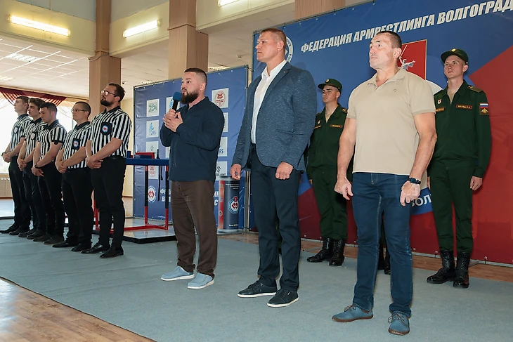 Турнир открывали генеральный секретарь Федерации армрестлинга России Антон Михайлович Гузев, полномочный представитель Федерации армрестлинга России по Южному Федеральному округу Иван Александрович Доброрезов и директор Дома Офицеров Близнюк Сергей Сереевич.