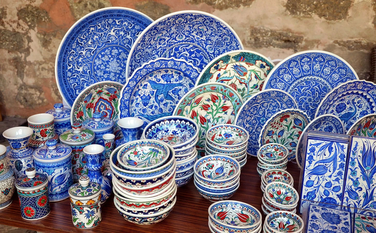Выше мы уже упоминали о чайных наборах, но это только маленькая часть всего разнообразия посуды, которая встречается в турецких магазинах и на рынках. Тарелки, чашки, стаканы, блюдца, кружки можно увидеть самых разных размеров и цветов. Изделия выполнены из фарфора, керамики, стекла, глины, попадается и ручная работа. Обратите внимание на различные наборы, они стоят на порядок дешевле, чем если покупать каждый прибор по отдельности. Встречается и такая посуда, которую вы никогда не видели, можно найти оригинально выполненные чайники, подсвечники, подстаканники. Такой подарок точно понравится кому угодно.