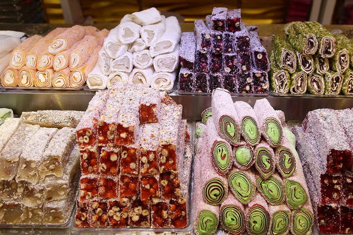 Вариантов рахат-лукума в Турции огромное количество, приготовление у него то же самое разнообразное. Наполнители могут быть какие угодно: карамель, шоколад, орехи, ягоды, фрукты, кофе, нуга, сок, сироп, молоко и дальше по списку. На прилавках рахат-лукум представлен в ярких цветах, форма чаще всего круглая, в рулете, нарезанная небольшими кусочками или кубиками. Глаза разбегаются, но при выборе вы сможете всегда попробовать понравившийся вариант и после этого покупать его.