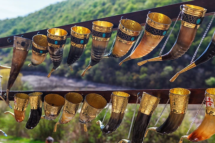 Поехать в Грузию и не приобрести рог для вина будет непростительной ошибкой. Без него не обходится ни одно торжество. Тамада обязательно берет в руки рог произнося всевозможные тосты. Вообще, рог использовали многие другие древние народы, включая германцев, кельтов, скифов, но сегодня он остался популярным в основном в Грузии. Даже если вы не будете пить вино из рога, он в любом случае может украсить ваш дом, ведь продаются его оригинальные варианты. Некоторые можно смело называть произведениями искусства. Купить рог для вина можно в сувенирном магазине или на рынке.