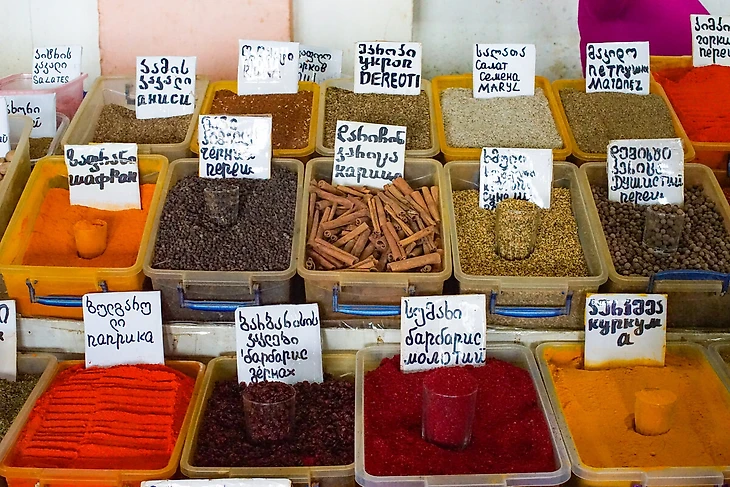 Наверняка каждая домохозяйка слышала про хмели-сунели, незаменимую приправу для приготовления мясных блюд и не только. Она продается в каждом магазине, но купленная в Грузии на рынке, поверьте, гораздо более ароматная. Хмели-сунели, по сути, это сборный состав разных трав. Причем на вкус и запах приправа у продавцов может отличаться. Обязательно спрашивайте состав и, конечно, пробуйте. Хмели-сунели используют в приготовлении харчо, чахохбили и других блюд.