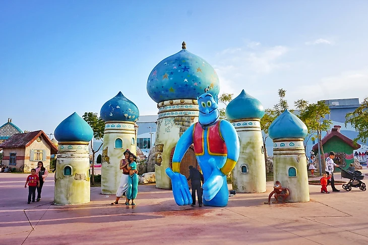 Помимо осмотра домиков, гости парка сказок могут сделать фотографии с скульптурами любимых персонажей. Среди них представлены Джинн, Алладин, Красная шапочка, Белоснежка и другие.