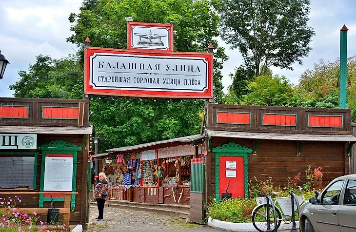 Ни один визит в Плес не будет полным без прогулки по Калашной улице, некогда оживленной артерии города, ведущей свою историю с XVIII века. После обустройства набережной и других частей города, Калашная улица несколько затерялась среди многочисленных домов. Но в последние годы, благодаря росту туристической популярности Плеса, историки и энтузиасты взялись за восстановление этой старинной улицы. Территория была расчищена и благоустроена, а вдоль всей Калашной улицы открылись стилизованные под старину торговые лавки, напоминающие о былом величии этого места.