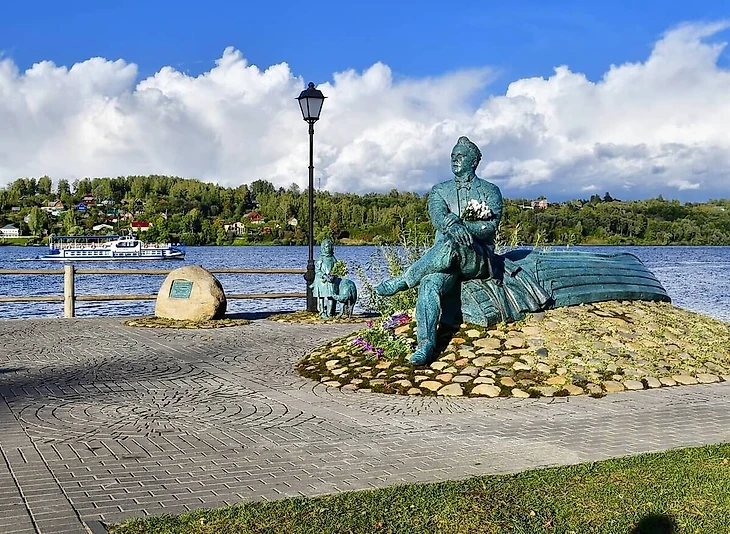 Набережная Плёса – это не просто архитектурный памятник, но и галерея под открытым небом. Здесь вас встретят бронзовые герои городских легенд и забавные персонажи, с которыми связаны курьезные истории. Погладьте бронзовую кошку за ушком, чтобы обрести удачу, сфотографируйтесь с задумчивым псом Барбосом, а у памятника Левитану загадайте желание, глядя на бескрайние волжские дали. Протяженность маршрута около 2 км, для неспешной прогулки по набережной лучше всего выбрать утро или вечер, когда нет толп туристов.