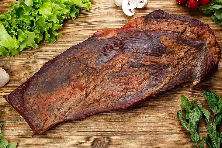 После маринования мясо подвешивают над очагом, где оно медленно коптится в течение нескольких дней. Дым от тлеющих дров проникает в волокна мяса, придавая ему характерный копченый аромат и золотистый цвет. В процессе копчения мясо теряет влагу, становится более плотным и приобретает неповторимый вкус. Перед подачей на стол копченое мясо обычно нарезают тонкими ломтиками и слегка обжаривают на сковороде или гриле, чтобы подчеркнуть его вкус и аромат. Подают мясо на глиняных тарелках, украшенных свежей зеленью и овощами. В качестве гарнира часто используют мамалыгу (абысту) – густую кашу из кукурузной муки, которая идеально сочетается с копченым мясом.