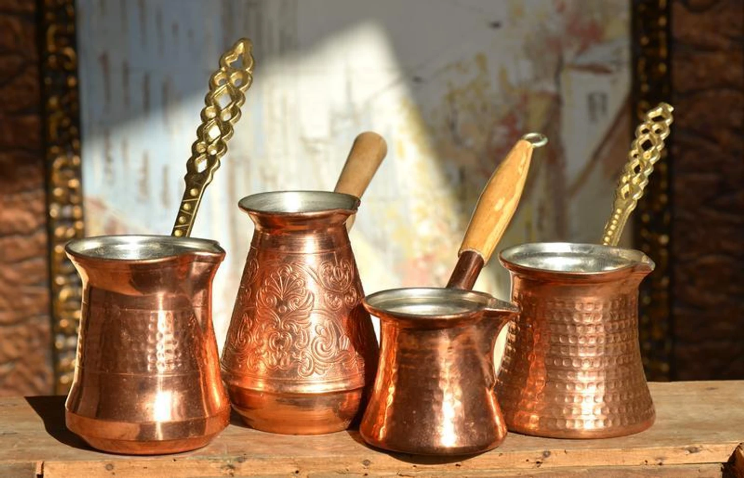 Толстые медные стенки джезвы обеспечивают равномерный нагрев, что позволяет раскрыть весь аромат и вкус кофейных зерен. Длинная ручка не только удобна в использовании, но и защищает руки от ожогов. Важно отметить, что абхазцы верят, будто только в джезве можно приготовить настоящий кофе, обладающий неповторимым вкусом и ароматом. Кофе мелкого помола засыпают в турку, заливают холодной водой и ставят на медленный огонь. Важно следить за процессом, чтобы кофе не «убежал». Как только на поверхности появится пенка, джезву снимают с огня, дают пенке осесть и снова ставят на огонь. Процедуру повторяют несколько раз.