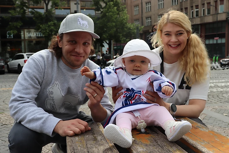 После четвертьфиналов в Остраве мы с фотографом Ольгой Бугаевой отправились на поезде в Прагу. Автор этих строк планировал остаться в столице до окончания турнира. Быстро заселившись в хостел, отправился в центр города, где меня ждали мои друзья: Ари-Пекка и его супруга Хелли-Мария вместе с полугодовалой дочкой по имени Helmi (с финского означает «Жемчужина») и родители Ари-Пекки приехали из Тампере на несколько матчей, и я еще в апреле заранее заказал джерси усть-каменогорского «Торпедо» с номером 23 (легендарного Бориса Александрова и в то же время год рождения Helmi) с именем малышки. Сделав несколько фотографий на память, пообщались о сборной Финляндии и пожелали друг другу удачи: мои друзья через пару часов вылетали на родину. Кстати, джерси «Торпедо» стало для Helmi уже четвертым в ее коллекции и теперь в далеком финском Тампере растет маленькая болельщица «Устинки». Ждем Ари-Пекку, Хелли-Марию и малышку Helmi на матчах «Торпедо» в Усть-Каменогорске. Обязательно пригласим их на символическое вбрасывание перед матчем!