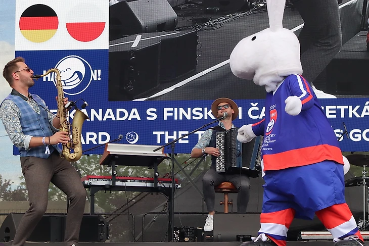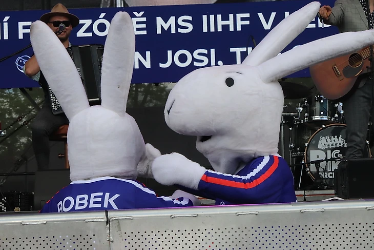 Маскоты ЧМ кролики Боб и Бобек весь день развлекают болельщиков на трибунах и откуда в них столько энергии остается загадкой. Они успевают и к журналистам подойти и, например, взять телекамеру и изобразить съемку матча. А в микст-зоне их ждут не меньше чем хоккеистов и тренеров. Перед тем как сюда приходят участники матча журналистов «развлекают» Боб и Бобек, появление которых вызывает улыбку даже у серьезных с виду седовласых журналистов из европейских стран. Разговаривать маскотам запрещено по контракту, поэтому их флэш-интервью перед телекамерами или диктофонами получаются веселыми. Боб и Бобек подражая хоккеистам, смахивают несуществующий пот, показывают жестами как было сложно выходить на лед, играть и побеждать. Затем, проходя мимо строгих медиа-офицеров Международной Федерации хоккея, могут похлопать тех по плечу или приобнять. Те лишь улыбаются и тут же переключаются на журналистов.