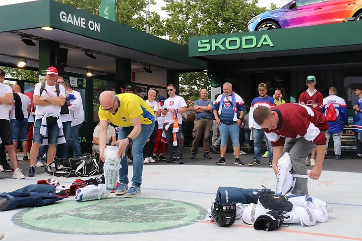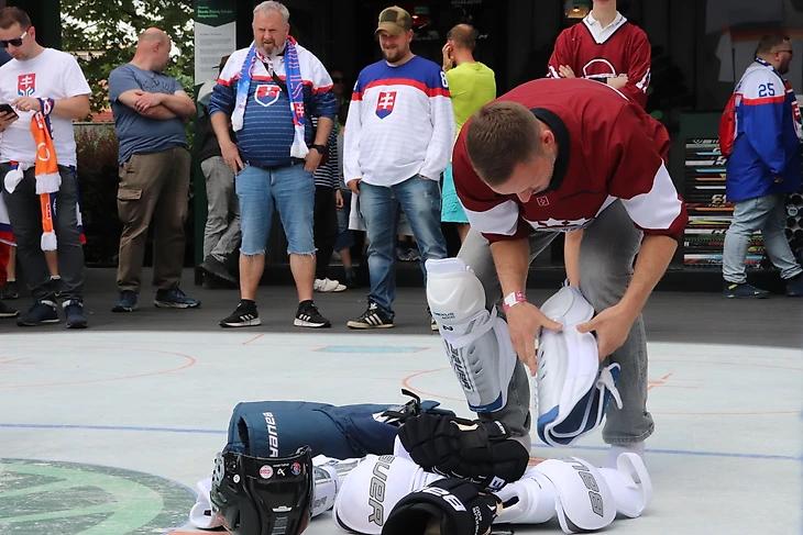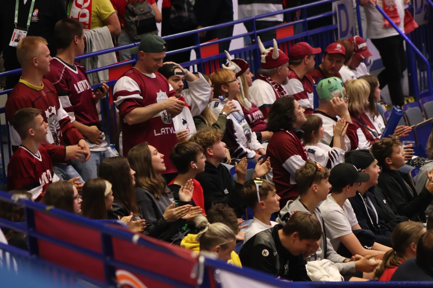 Друзья из обожаемой мною Риги тоже прибыли в Остраву и мы встретились перед матчем сборной Латвии и Франции возле фан-зоны, где собралась огромная армия латвийских фанатов. Алексей Кретов, с которым мы случайно познакомились после ЧМ-2022, когда я возвращался на родину из воздушной гавани столицы Латвии приехал с супругой и друзьями. Пообщавшись и сделав несколько фотографий на память, обменялись подарками: Алексей привез из Латвии несколько бутылок рижского бальзама, шайбы и сладости, а я вручил казахскую тюбетейку на добрую память о встрече на чешской земле. А его товарищ, наслышанный о моей любви к Латвии, с улыбкой поинтересовался: «за кого будешь болеть в матче Казахстан-Латвия?». Затем мы несколько раз виделись на трибунах, когда играла сборная Латвии, а я переживал за латышей как за родных.