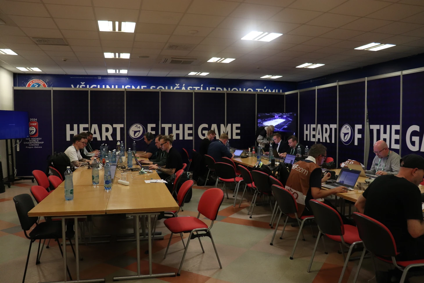 Журналисты в Остраве работали сразу в двух медиа-центрах: внутри арены и в легкоатлетическом манеже, где простора для творчества намного больше, но зато нужно идти на арену несколько сот метров и проходить через контрольный пункт с проверкой содержимого сумок. Особенно много журналистов и фотографов из Словакии, Польши, Латвии. Многочисленная журналистская братия из Польши внимательно наблюдала за матчем между Казахстаном и США, а после окончания игры записала интервью для польского ТВ с Романом Старченко и Дмитрием Бреусом. В целом в медиа-центре арены в Остраве в основном были слышны польская, словацкая речь, а в смешанной зоне для послематчевых интервью найти свободное место у стойки среди словаков и поляков было проблематично. Казахстанские хоккеисты после разгромного поражения от США шли через микст-зону в мрачном состоянии и с каменными лицами. Даже обычно весёлый Евгений Рымарев шел впереди всех с хмурым выражением и останавливать его с просьбой записать интервью не было никакого желания. Алихан Асетов был краток и зол сам на себя, а кто же сможет поднять команду из окопов и повести ее вперед спасать отечество для нас, журналистов, оставалось загадкой. Послематчевое интервью с Галымом Мамбеталиевым обычно «укладывалось» в три минуты, а разгром от США оставил множество вопросов накануне важнейшей игры за место в элитном дивизионе. На просьбу журналистов отвечать более подробно и откровенно тренер сборной отреагировал с неприкрытым раздражением. Для него общение с прессой было в тягость и это бросалось в глаза. Попытка объяснить, что мы являемся «мостиком» между командой и болельщиками вызвала у него лишь горькую ухмылку.