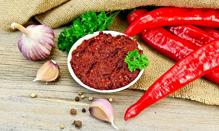 Копченая рыба, всевозможные специи, все это уже разогревает аппетит. Но продолжим тему и расскажем об аджике, вариантов приготовления которой существует множество. Появилась она тоже здесь на Кавказе. По одной из легенд аджику брали с собой пастухи, и она представляла собой обыкновенную соль со специями, то есть была в сухом виде. Ее добавляли в различные блюда, начиная с салатов и заканчивая супами. Обязательным ингредиентом она была для маринада мяса.