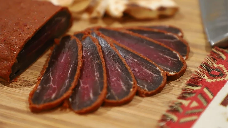 Многие мясные продукты, считающиеся сегодня деликатесами, пришли к нам с древних времен. При перевозке они требовали длительного хранения и специальной обработки, чтобы сохранить вкус и все свои полезные качества. Среди таких продуктов особую ценность составляла бастурма, вяленое мясо, которое готовят из говяжьей вырезки.