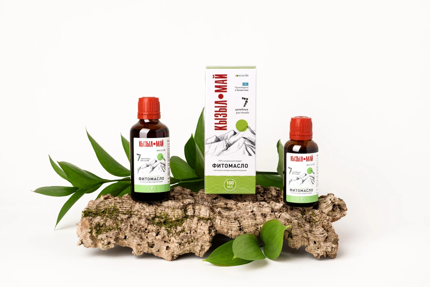 В плане заботы о своем здоровье и профилактики различных заболеваний следует обратить внимание на один интересный продукт, который изготавливают в Казахстане — масло «Кызыл Май». В состав его входят много различных лекарственных растений, включая корень солодки, тимьян, плодов шиповника. Все это на основе растительного масла и экстракта листьев крапивы. Само масло по цвету получается темно-красным, по консистенции густым.