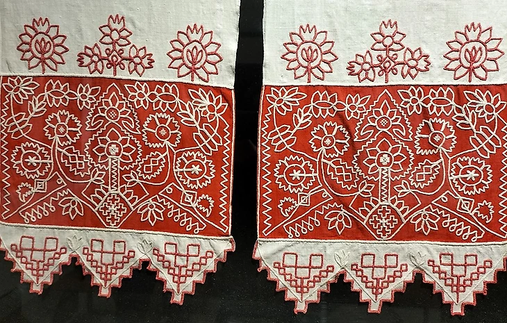 Национальная вышивка, которая сохранилась до наших дней, пришла в Карелию вместе с переселенцами из Великого Новгорода. С древних времен на Руси искусству вышивки приучали девочек с юных лет. Вышиванием девушки готовили свое приданое. Вышивали подолы рубах, нательного белья, полотенца, простыни с наволочками. По красному полю ткани вышивали узоры белыми нитками, а по белому, наоборот, орнаменты формировали красными нитками.
