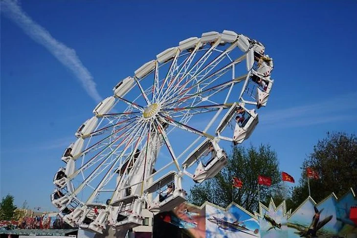Не меньшей популярностью пользуется колесо обозрения. В Измайловском парке их сразу два, они отличаются размером. Высота малого колеса 30 метров. Этого достаточно, чтобы с высоты увидеть прекрасную панораму на парк, вы можете кататься с детьми. У большого колеса высота подъема выше, поэтому не все родители с детьми решаются на нем прокатиться, но если решаются, то будут вознаграждены. С верхней точки прекрасный вид на Москву и жемчужину парка — Измайловский кремль.
