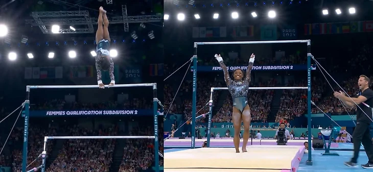 Байлс во время разминки на вольных упражнения быстро ушла с ковра и вернулась уже с перебинтованной ногой. Явно хромала, но сделала сложнейшие вольные и прыжок, только на брусьях чуть облегчила программу – в финале там Симону не увидим